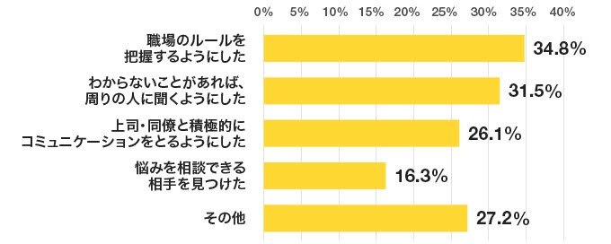 よって、積極的にコミュニケーションを取っていくことや職場の文化に慣れようとする動きが必要になってきます。