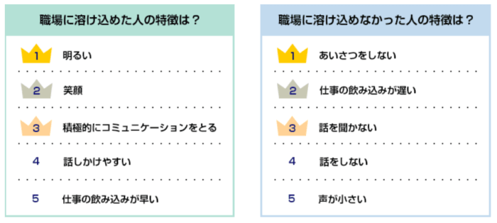逆に溶け込めなかった人の特徴は、コミュニケーション不足が主な要因になっています。
