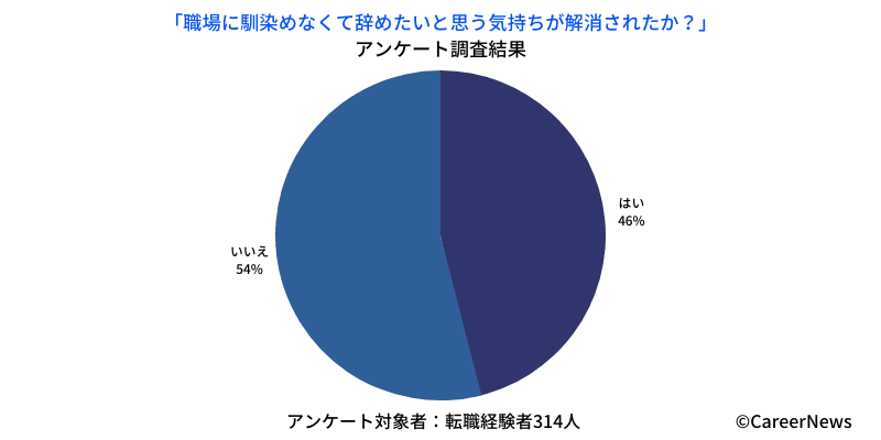 転職経験者314名に「転職後の職場に馴染めなくて辞めたいと思ったことがあるか?」アンケート調査した結果